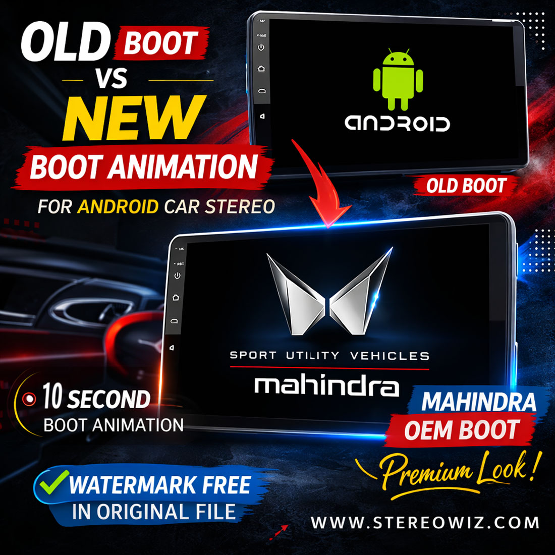 Give your Android stereo a premium OEM-inspired look with the Mahindra Dark Edition startup sequence. Includes a matching boot logo and fluid animation optimized for high-resolution QLED and IPS displays.